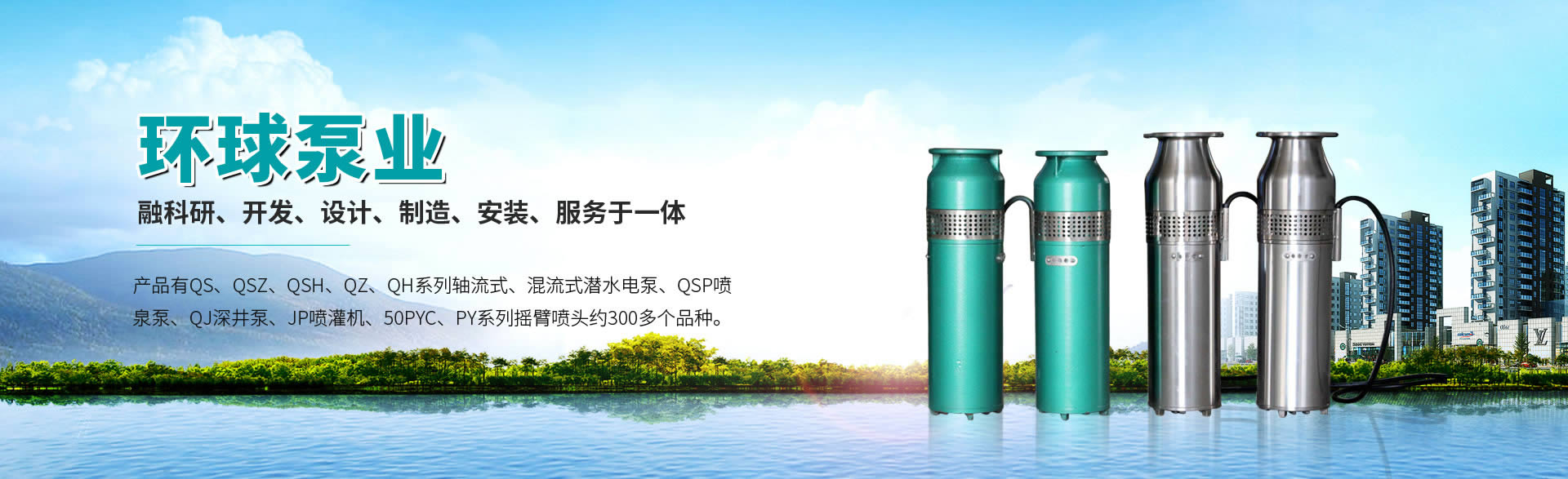 徐州環(huán)球泵業(yè)有限公司有QS、QSZ、QSH、QZ、QH系列軸流式、混流式潛水電泵,QSP噴泉泵,QJ深井泵,JP噴灌機,50PYC、PY系列搖臂噴頭約300多個品種。